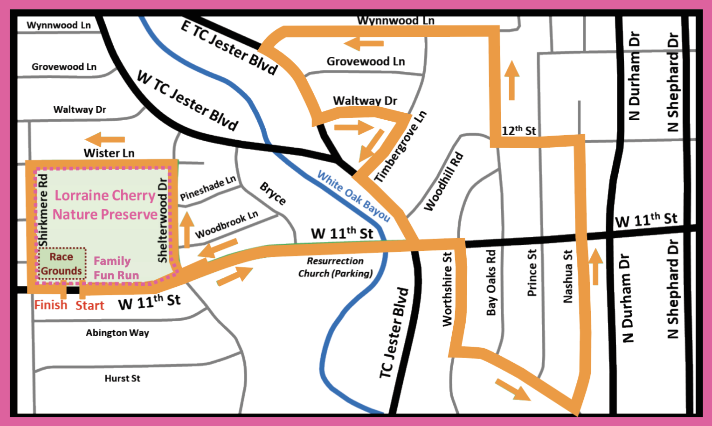 The church has graciously allowed runners to park in their parking lot for the race. Please plan on parking here and not near Lorraine Cherry Nature Preserve on race day. There will not be parking available to runners around the park due to road closure for the races. The road closures will begin at 7:30am so please plan accordingly.